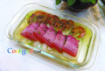 第一种:海鲜菜谱咸肉虾干蒸白菜做法