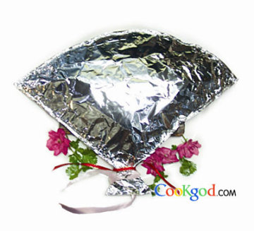 4、铁板连同锡包上中火烧至开始膨胀即转为小火烧至锡包膨胀成大气泡即可(共计加热为8分钟)。