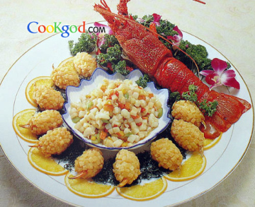 第一种:海鲜菜谱蟹钳龙虾海鲜粒做法