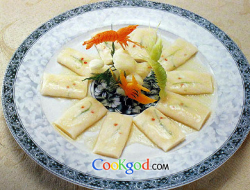 第一种:海鲜菜谱鲜虾白玉卷做法