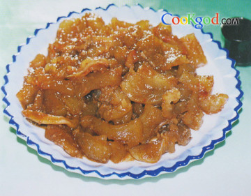 蹄筋要先用小火烧制软糯。芡汁要薄。