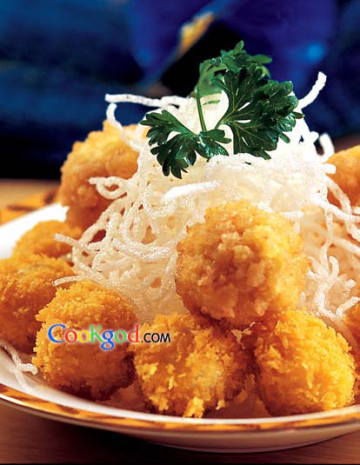 第三种:海鲜菜谱柠香杏仁酥虾球做法