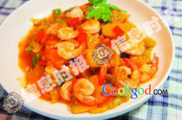 第一种:海鲜菜谱南瓜咕噜虾做法