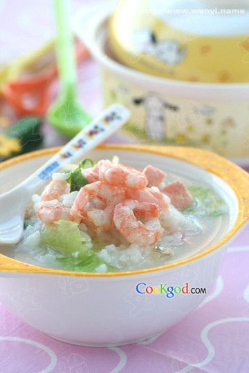 第一种:海鲜菜谱北极虾生菜咸味粥做法