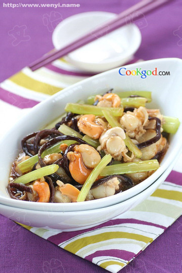 第一种:海鲜菜谱扇贝木耳丝做法