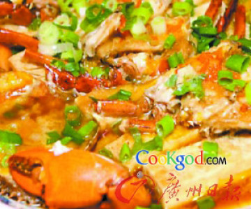 第一种:海鲜菜谱葱香螃蟹豆腐做法