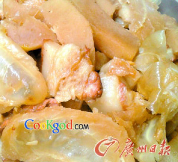 第一种:海鲜菜谱扣肉小虾焖柚皮做法