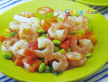 材料虾仁 300克,毛豆仁 100克,胡萝卜 1/2条,西红柿 1个,葱 1根,姜 50克调味料a料:盐 1/2小匙,淀粉 1/2大匙b料:米酒、麻油 各1/2小匙,盐 1/2小匙,淀粉水 1大匙