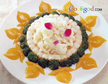 第一种:海鲜菜谱玉桃鲜虾片做法