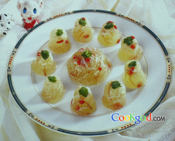 第一种:海鲜菜谱金盅蟹肉冻做法
