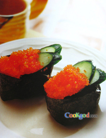 相关菜谱名称推荐:军舰蟹子寿司,军舰蟹子寿司,飞鱼子寿司,鳕鱼肝军舰寿司