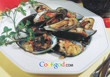 第一种:海鲜菜谱焗青口贝做法