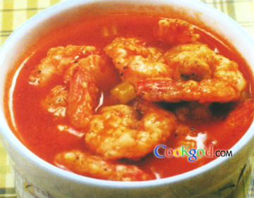 3、再加入番茄沙司、炸好的大虾、鸡高汤、月桂叶、百里香、髓、胡椒粉、调味焖至大虾熟透,放入大蒜碎出香味装罐即可。
