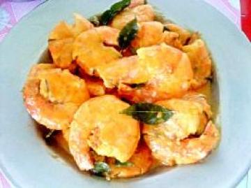 明虾-12只、指天椒(切粒)- 1 茶匙、咖喱叶-1 汤匙、咖喱粉- 1汤匙、无盐牛油 -2 汤匙、