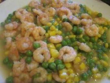 第一种:海鲜菜谱豌豆玉米虾仁做法