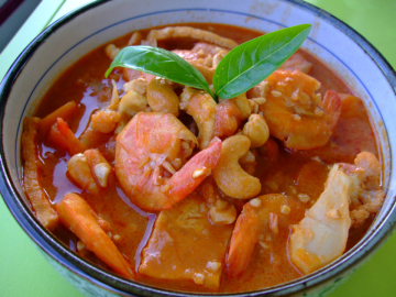 大虾鲜嫩,咖喱香浓,色泽艳丽。