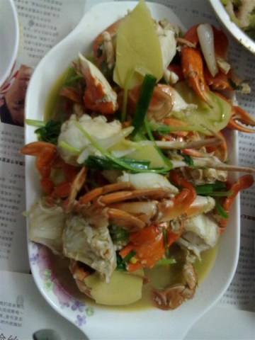 第一种:海鲜菜谱香葱焖花蟹做法