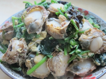 第一种:海鲜菜谱扇贝鸡蛋菠菜做法