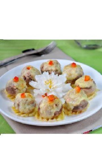 脆嫩的口菇里装满了鲜肉和虾仁,鲜香多汁,最上面一层浓郁奶香的芝士起了点睛作用。夹起一个咬一口,口感丰富饱满。