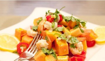 第一种:海鲜菜谱木瓜虾仁色拉做法