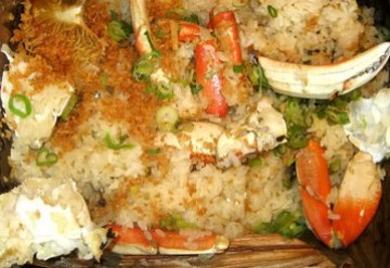 4。糯米同沥干水分的螃蟹一起摆在盘内
