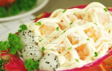 第一种:海鲜菜谱火龙果大虾色拉做法