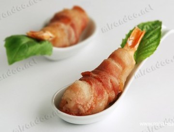 第一种:海鲜菜谱培根芝士虾卷做法