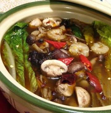 第一种:海鲜菜谱虾仁鲜菇煲做法