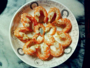 把海虾都剥壳了,一边剥可以一边摆造型~我最喜欢的就是摆成花的图案~~笑~