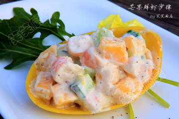 第三种:海鲜菜谱木瓜鲜虾沙律做法
