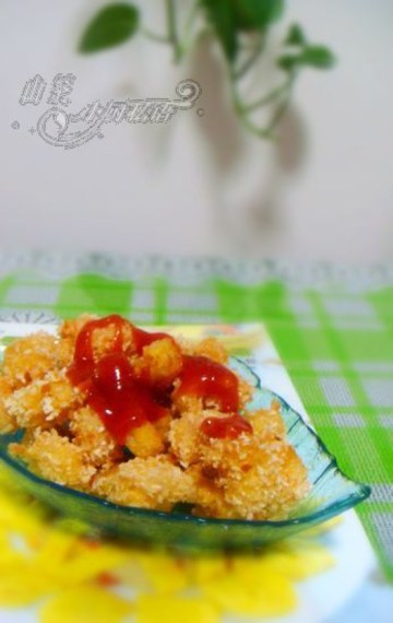 (4)热油锅,以中火将虾球炸至金黄色后捞起,沥干油份即可。