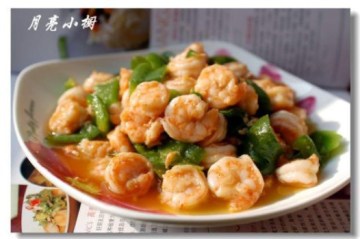 第一种:海鲜菜谱青椒烩虾仁做法