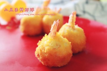 第一种:海鲜菜谱土豆泥鲜虾球做法