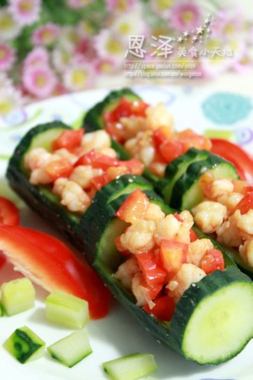 第一种:海鲜菜谱黄瓜酿鲜虾做法