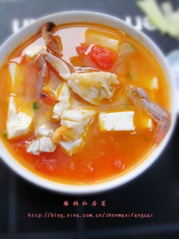 第一种:海鲜菜谱蕃茄梭子蟹豆腐煲做法