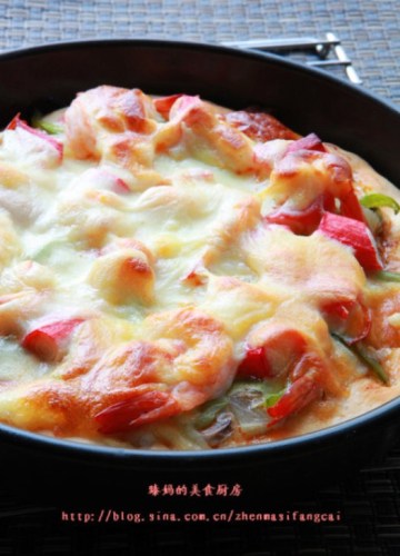 第二种:海鲜菜谱虾仁蟹柳海鲜比萨做法
