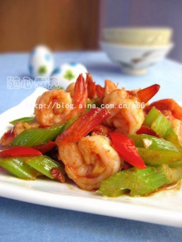 虾,西芹,红辣椒,大蒜,蒜蓉香辣酱,盐