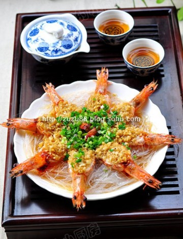 第一种:海鲜菜谱蒜蓉粉丝蒸虾做法