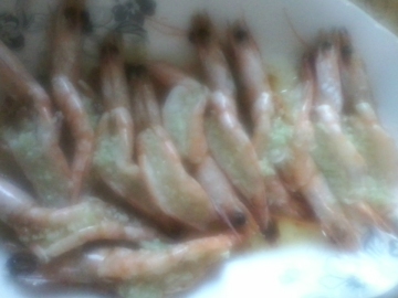 大虾250克,蒜茸,精盐,味精,盐