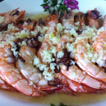 第一种:海鲜菜谱蒜末醉虾做法