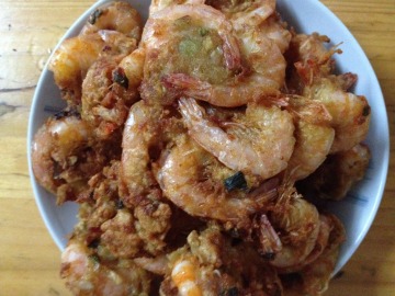 因为是油炸的海虾,不用买活鲜的。虽然不是很好看,没有一只只的,不过真心觉得好好吃,很香。嘻嘻,有点热气的朋友,吃完要吃点维c的水果可以降火。