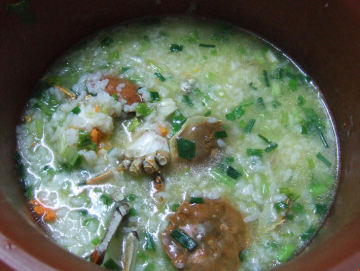 2.煮好咯,记得等粥煮好才放蟹下去啊,大约在煲个20来分钟就可以了