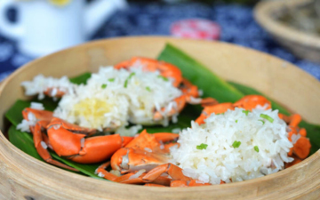第一种:海鲜菜谱粽香糯米蒸蟹做法