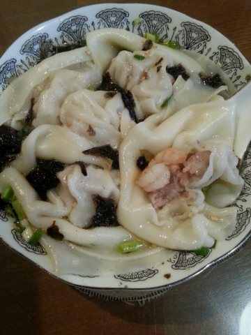 4、接下来是包馄饨,整个包,看得见的美味,哈哈!一咬口感相当的好! 非常鲜美!汤料配上濑户味岛香鬆,加上紫菜更是锦上添花。