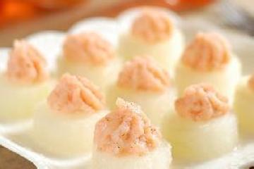 第一种:海鲜菜谱虾蓉冬瓜塔做法