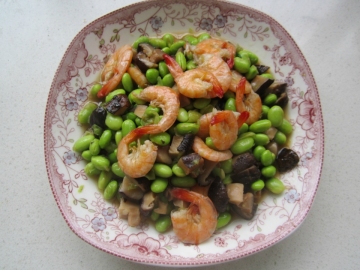 第一种:海鲜菜谱香菇毛豆米虾做法