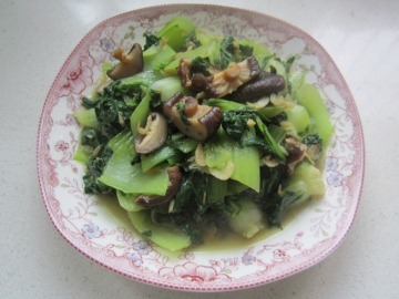 青菜300克,香菇、木耳少许,盐、油、鸡精适量。