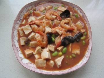 第五种:海鲜菜谱红白豆腐虾仁盖饭做法