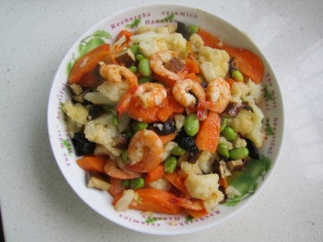 第一种:海鲜菜谱花菜毛豆虾仁做法