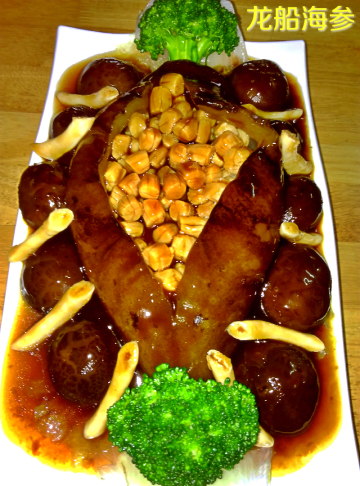 相关菜谱名称推荐:龙船海参,龙船海参,龙船海参,晓芹海参—鲍汁海参捞饭